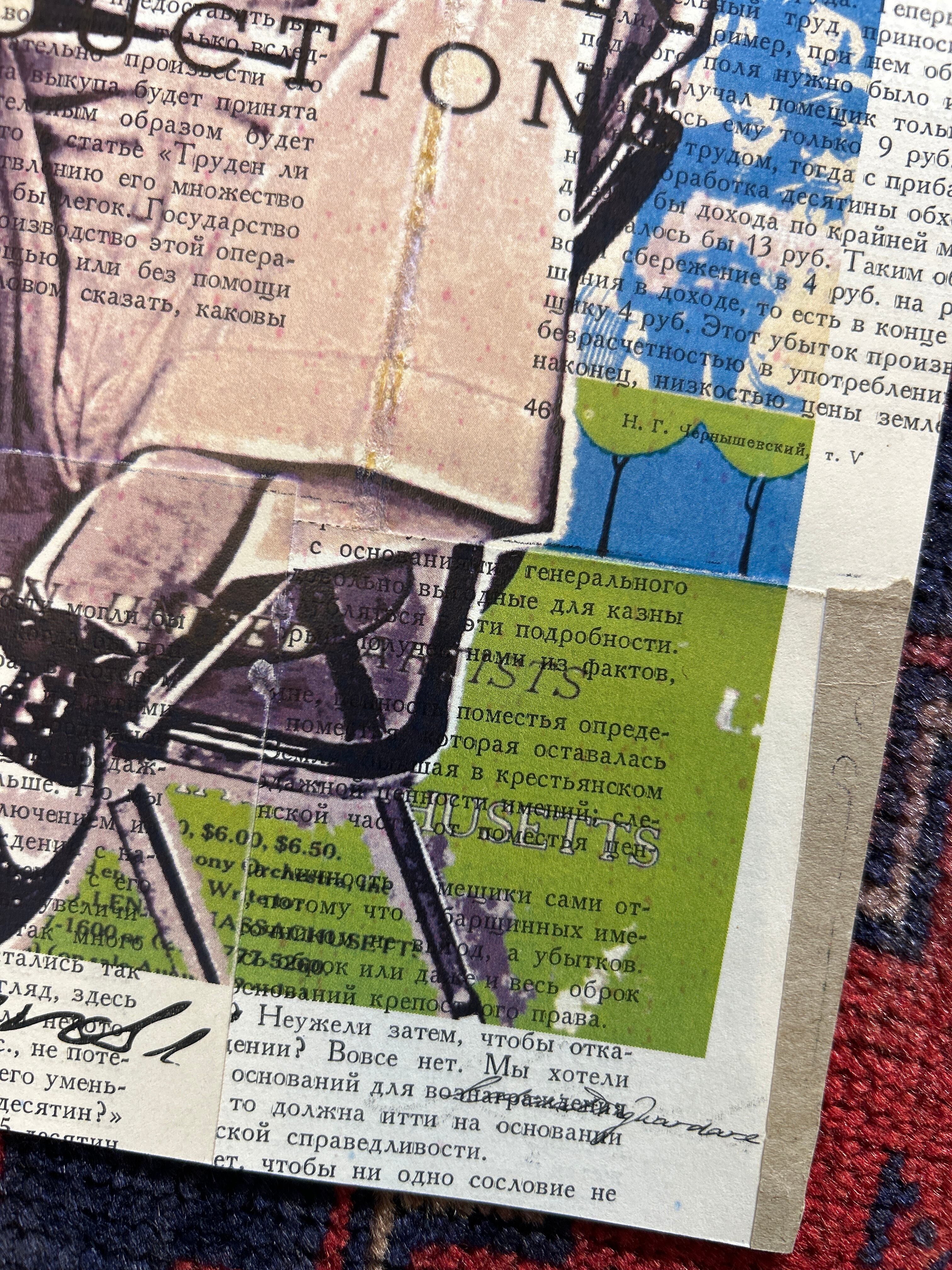 こちらのアートには洋書を使用したコラージュ紙が使われています。