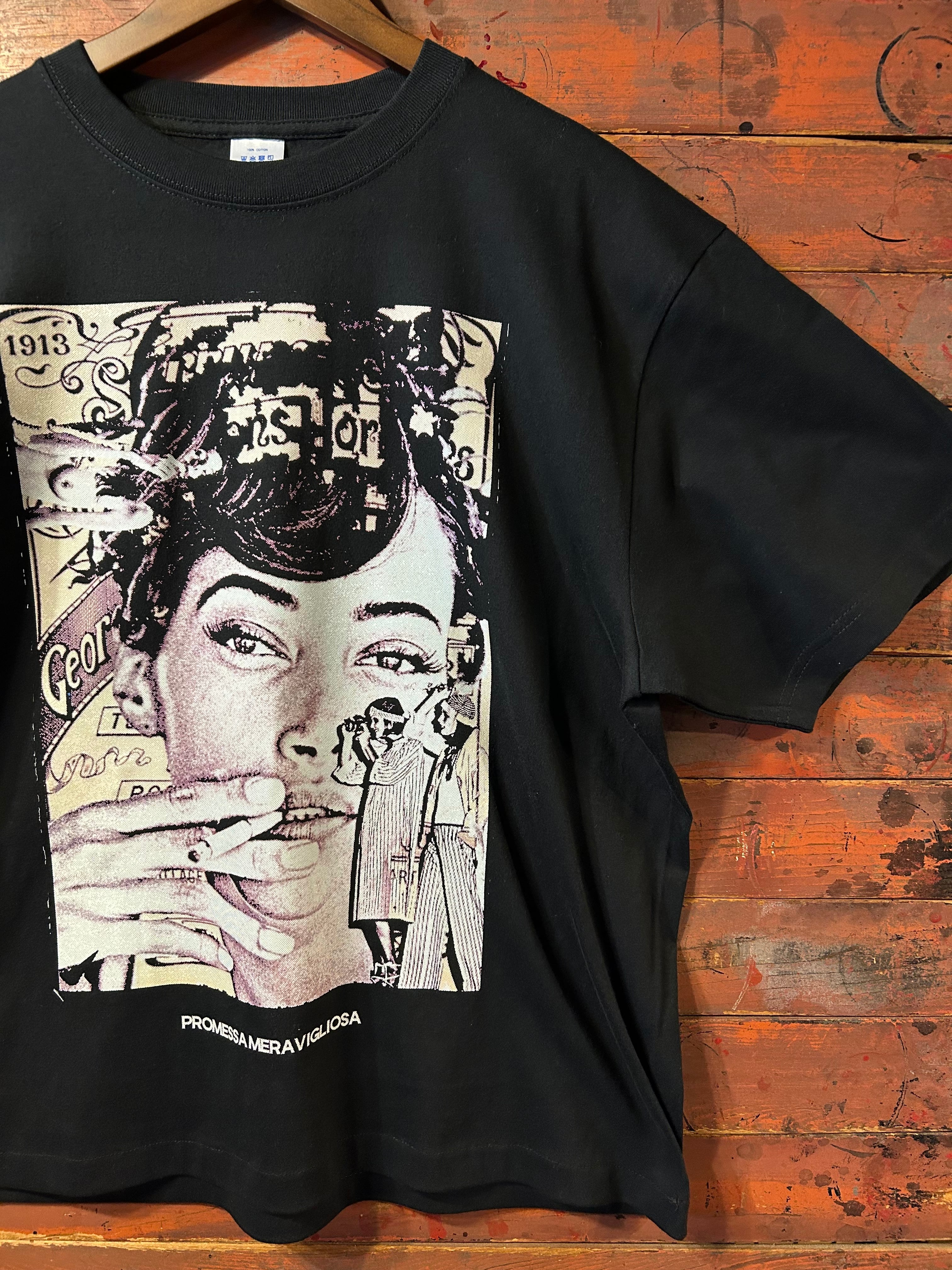 インクを重ねないことで、Tシャツとアートが自然に馴染み、抜け感のある仕上がりになっています。