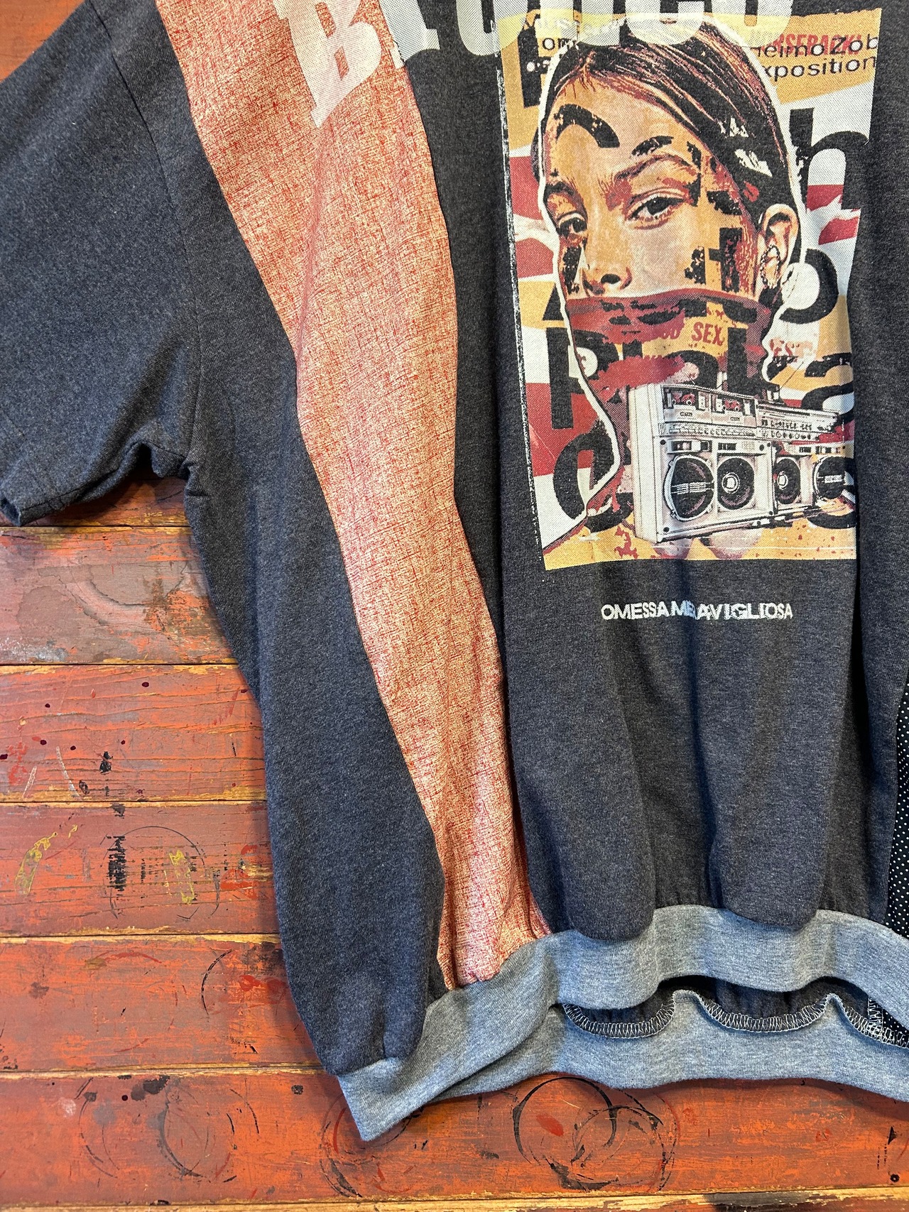 一点もののサンプリングアートTシャツ。
