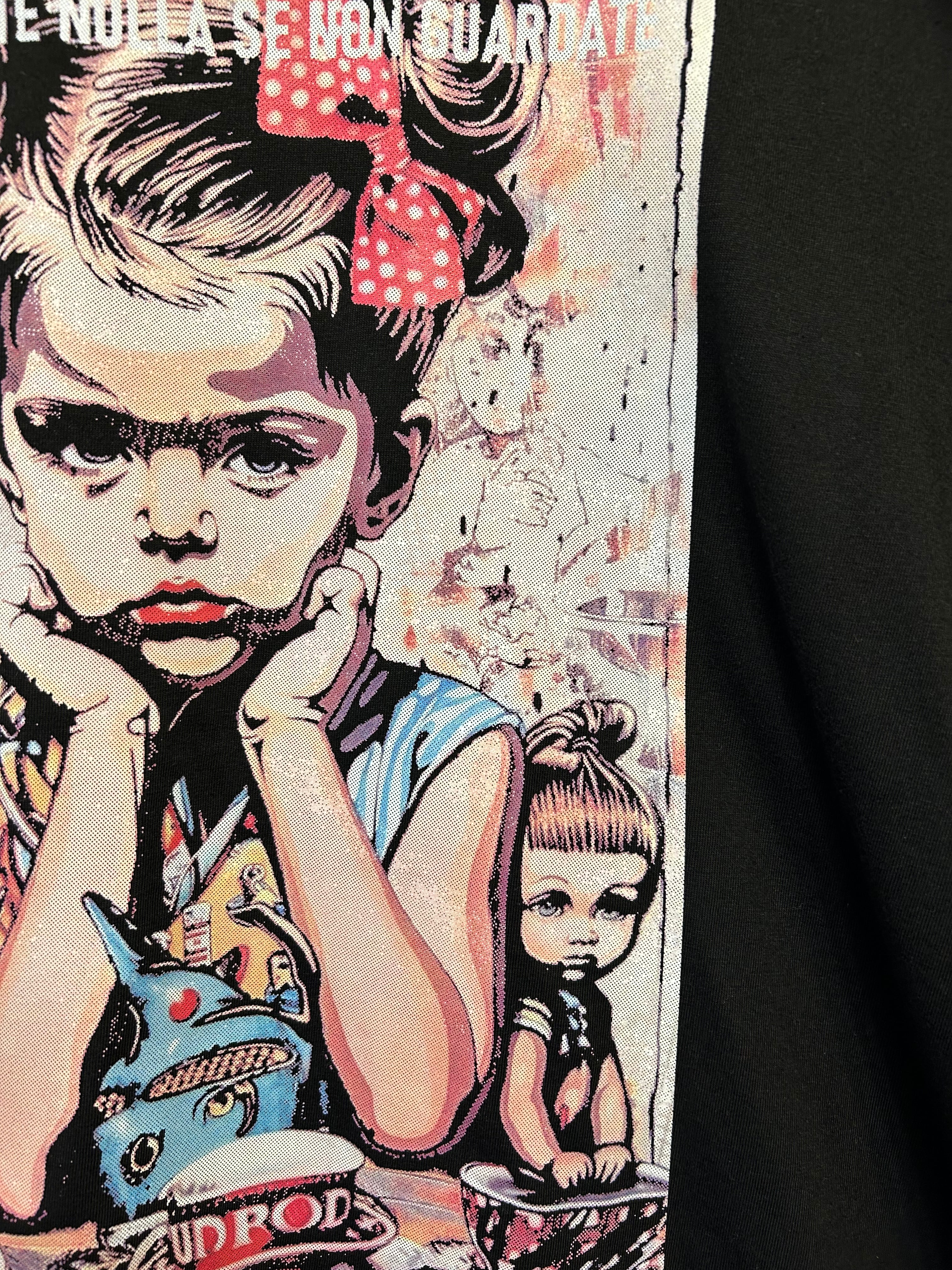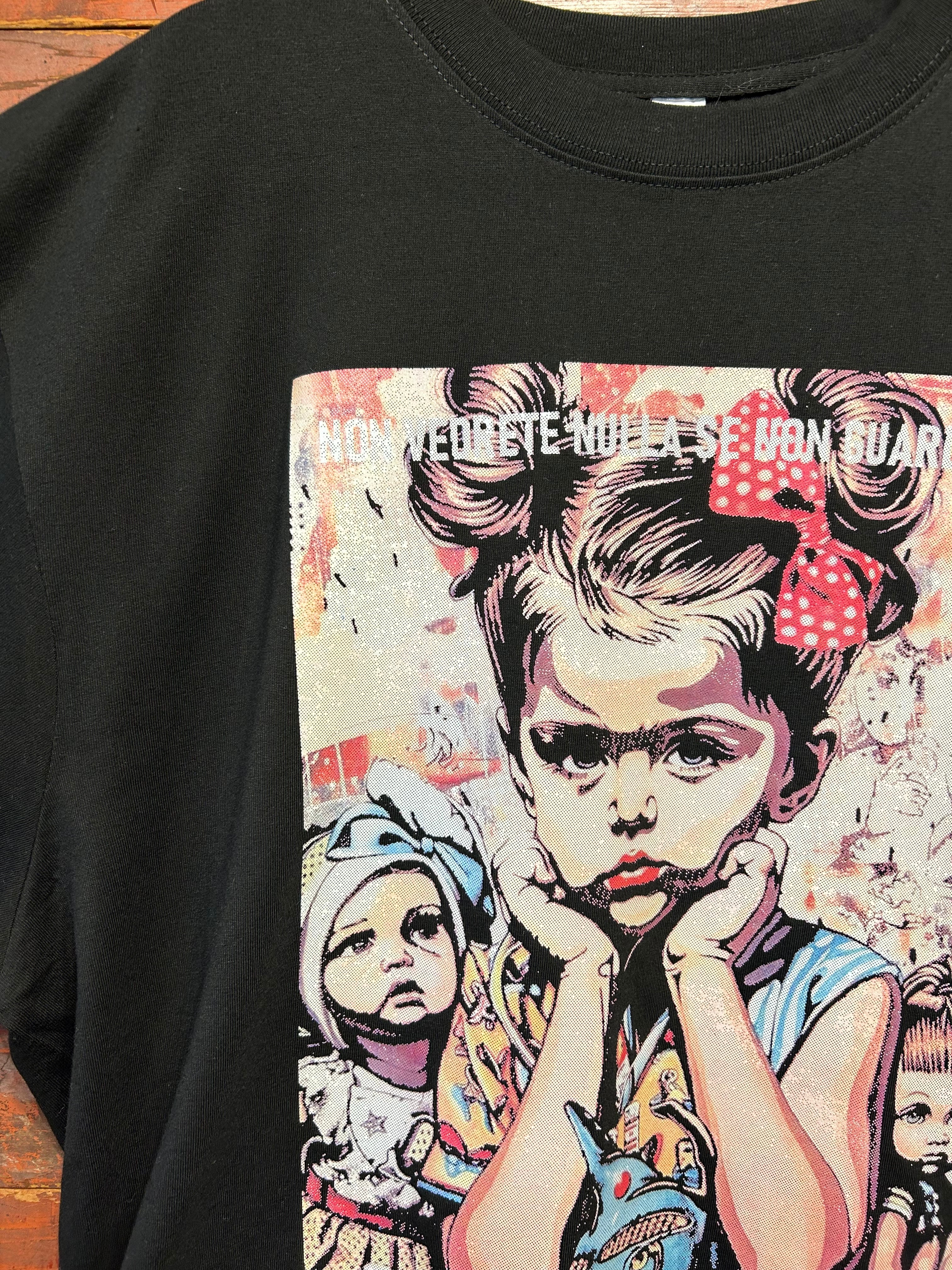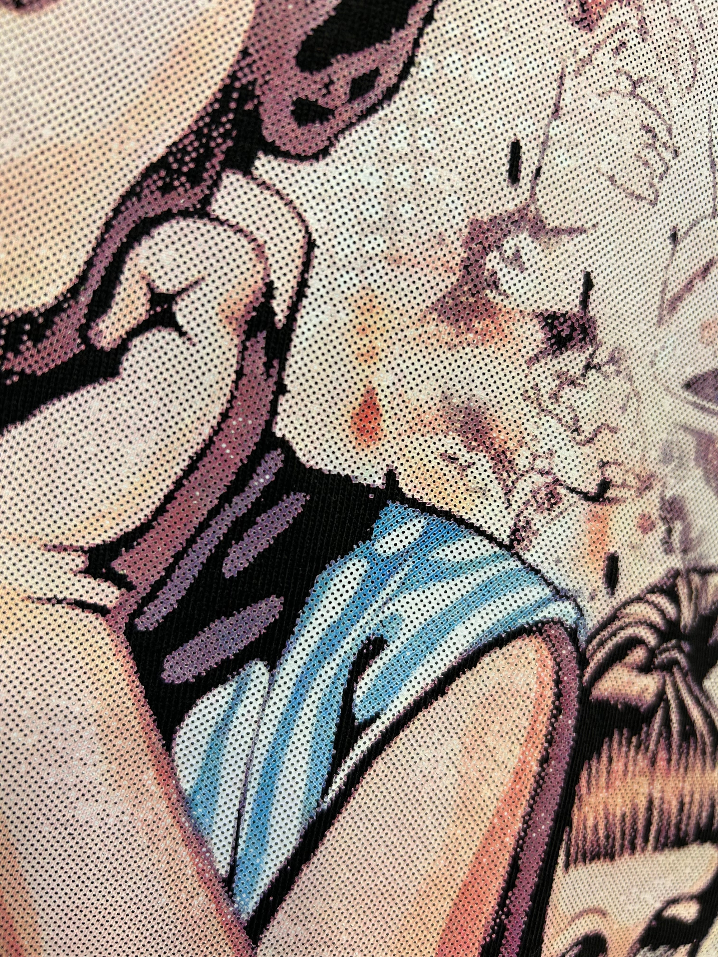 インクを重ねないことで、Tシャツとアートが自然に馴染み、抜け感のある仕上がりになっています。